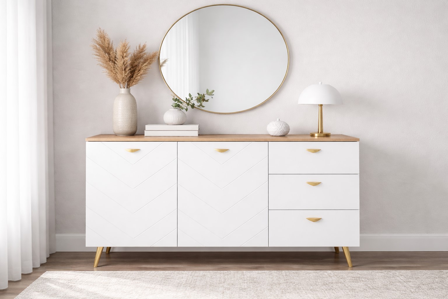 Komoda Aurelia 2 savršen je spoj modernog dizajna i funkcionalnosti. Dimenzija (š) 138 x (d) 40 x (v) 80,6 cm, idealna je za dnevni boravak, blagovaonicu, spavaću sobu ili hodnik.