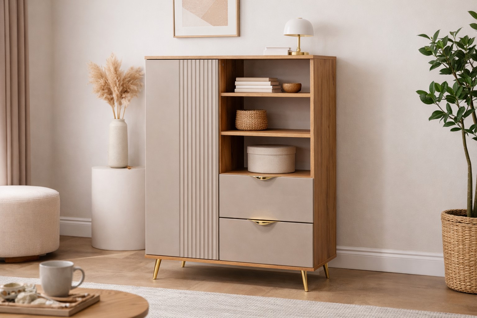 Vitrina Estilo predstavlja praktičan i stilski usklađen dodatak svakom domu, pružajući savršen balans između dekorativne i upotrebne vrijednosti.