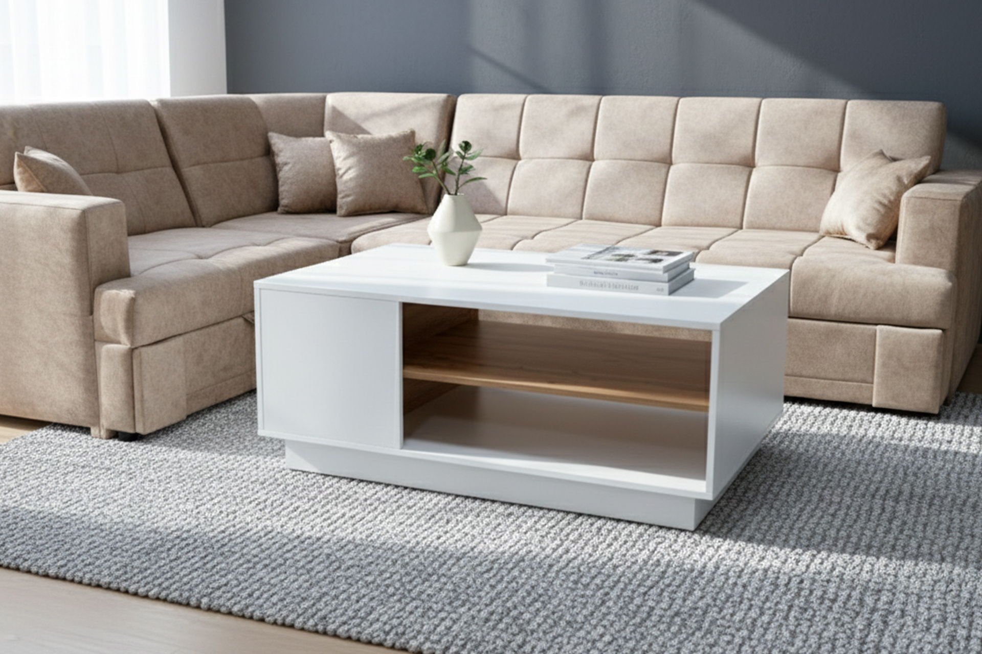 Izrađen je od kvalitetnog iverala, što osigurava stabilnost i dugotrajnost pri svakodnevnoj upotrebi. Zahvaljujući svojim dimenzijama 120,2 (š) x 70,2 (d) x 50,2 (v) cm, klub stol Roxy nudi dovoljno prostora za odlaganje pića, dekoracija ili svakodnevnih sitnica, a istovremeno ne zauzima previše mjesta.