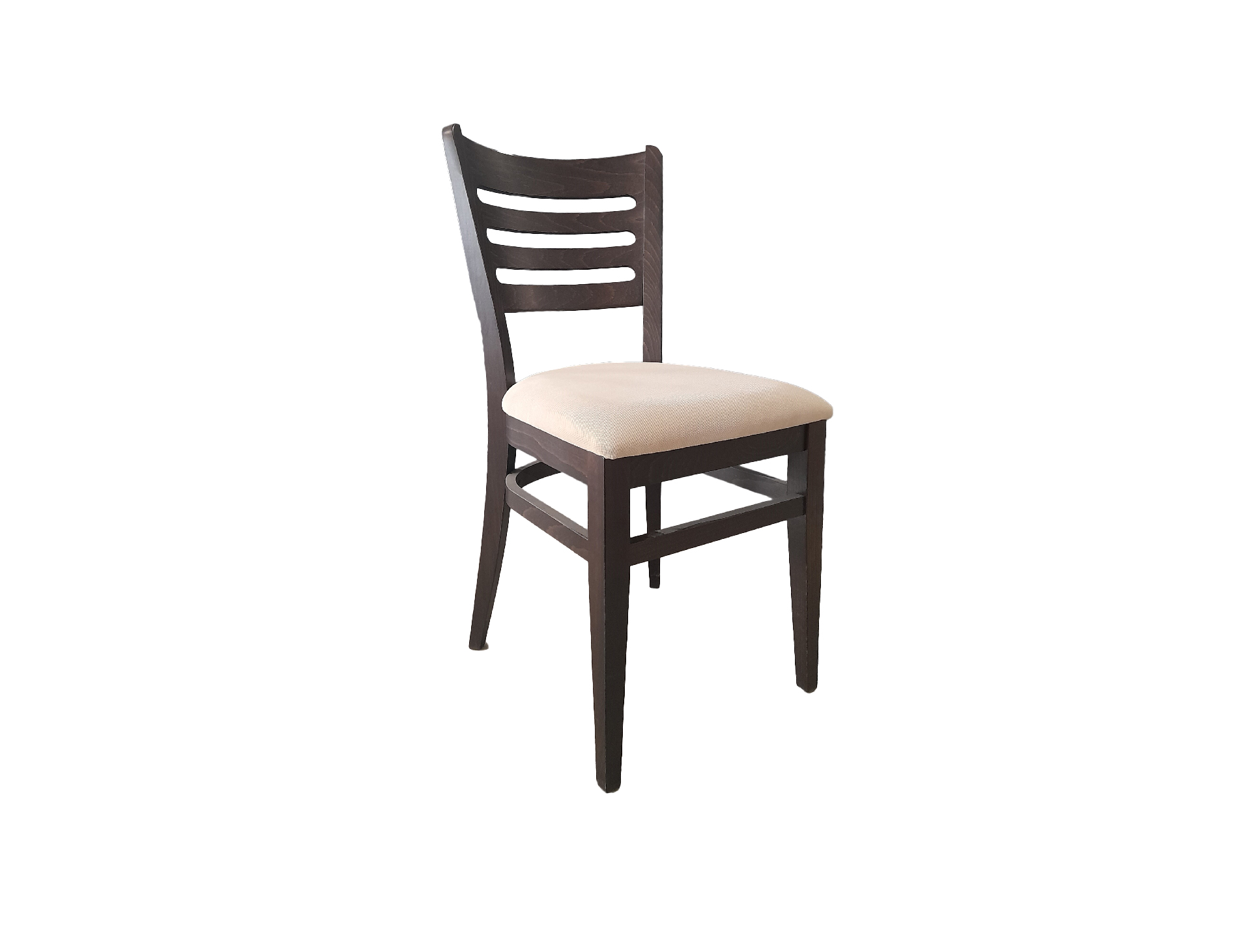 Materijal: Stolica je izrađena od kvalitetne blago parene bukve sušene na od 8-10 % vlažnosti. Sjedalo je izrađeno od mdf-a debljine 8 mm, obloženo spužvom T-25 debljine 10 mm i T-35 debljine 30 mm te tapecirano kvalitetnom tkaninom.